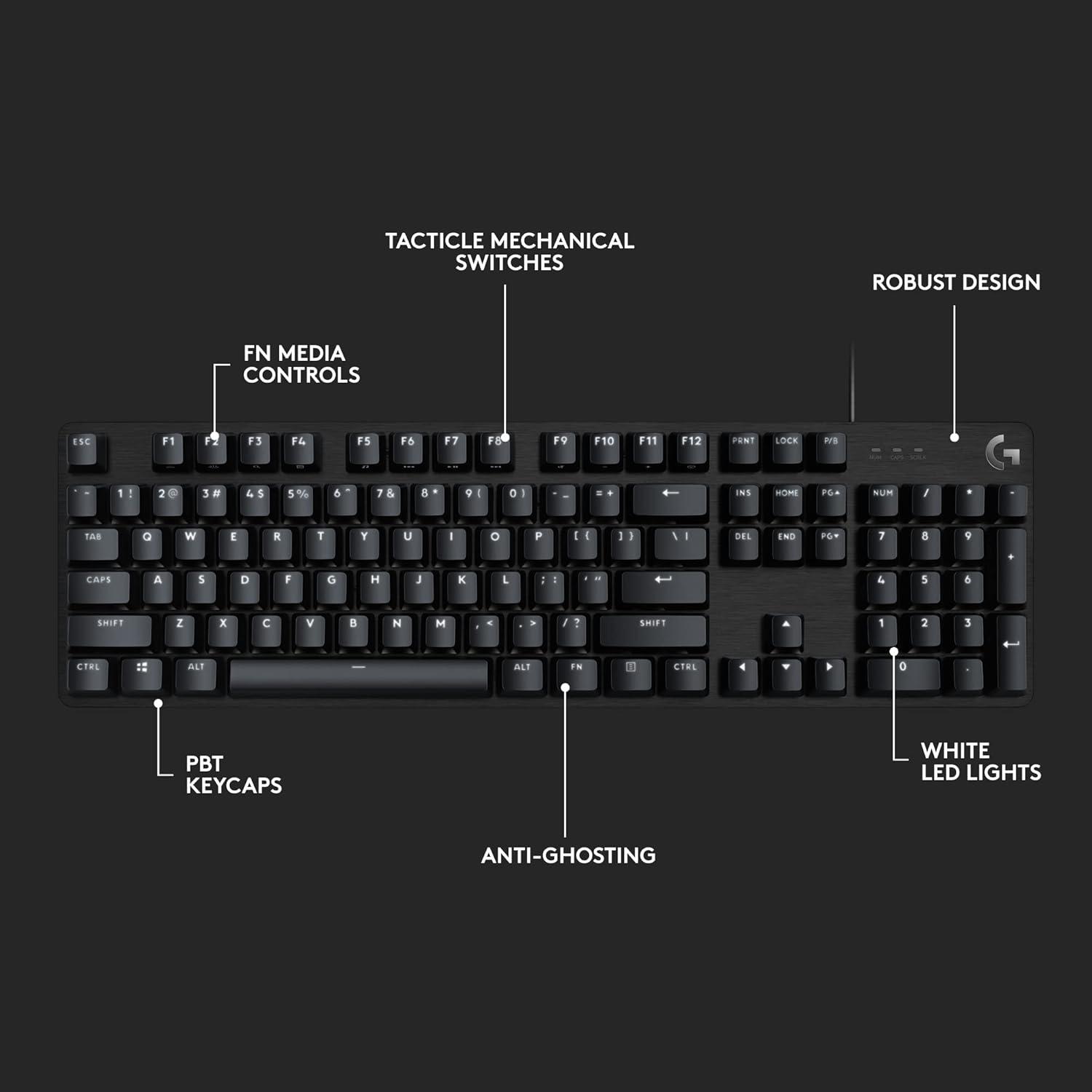Upgrade your gameplay experience with the Logitech G413 SE Full-Size Mechanical Gaming Keyboard. It delivers a gaming-grade mechanical switch experience. It’s designed to help serious players perform at a higher level and push themselves even further. The G413 SE features tactile mechanical switches; PBT keycaps, 6-key rollover anti-ghosting performance; a black-brushed aluminum top case with white LED lighting; 12 function key media controls; and reliable USB-corded technology. A compact, tenkeyless option is available. In short, the gaming-first features you need to put more perfect performance within reach. A keyboard engineered to perform. A keyboard that’s Made for Play.